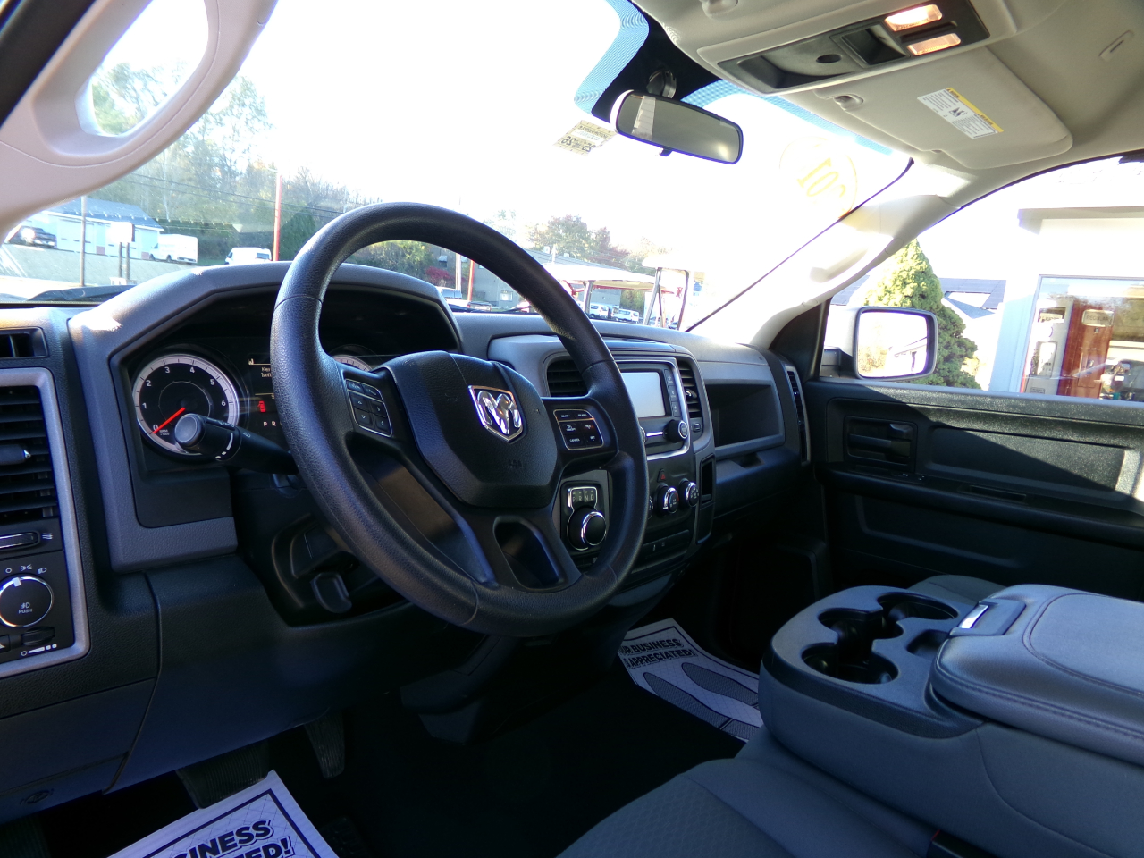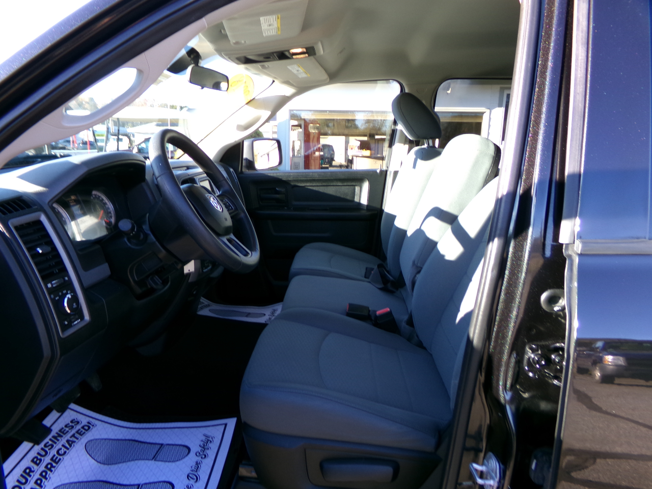This striking 2018 Ram 1500 Quad Cab 4x4 in black is in exceptional condition, especially underneath, having been driven in New York until February 2025 and thus avoiding the corrosive salty roads of Maine. It boasts a great service history, which is fully documented on CarFax. The truck is equipped with a fuel-efficient V6 engine, a front bench seat, a tow hitch, a bed cover, and more. It has a new inspection sticker and is ready for immediate purchase. For added peace of mind, it includes a complimentary 3-month or 3,000-mile warranty. Hurry in to see it today!